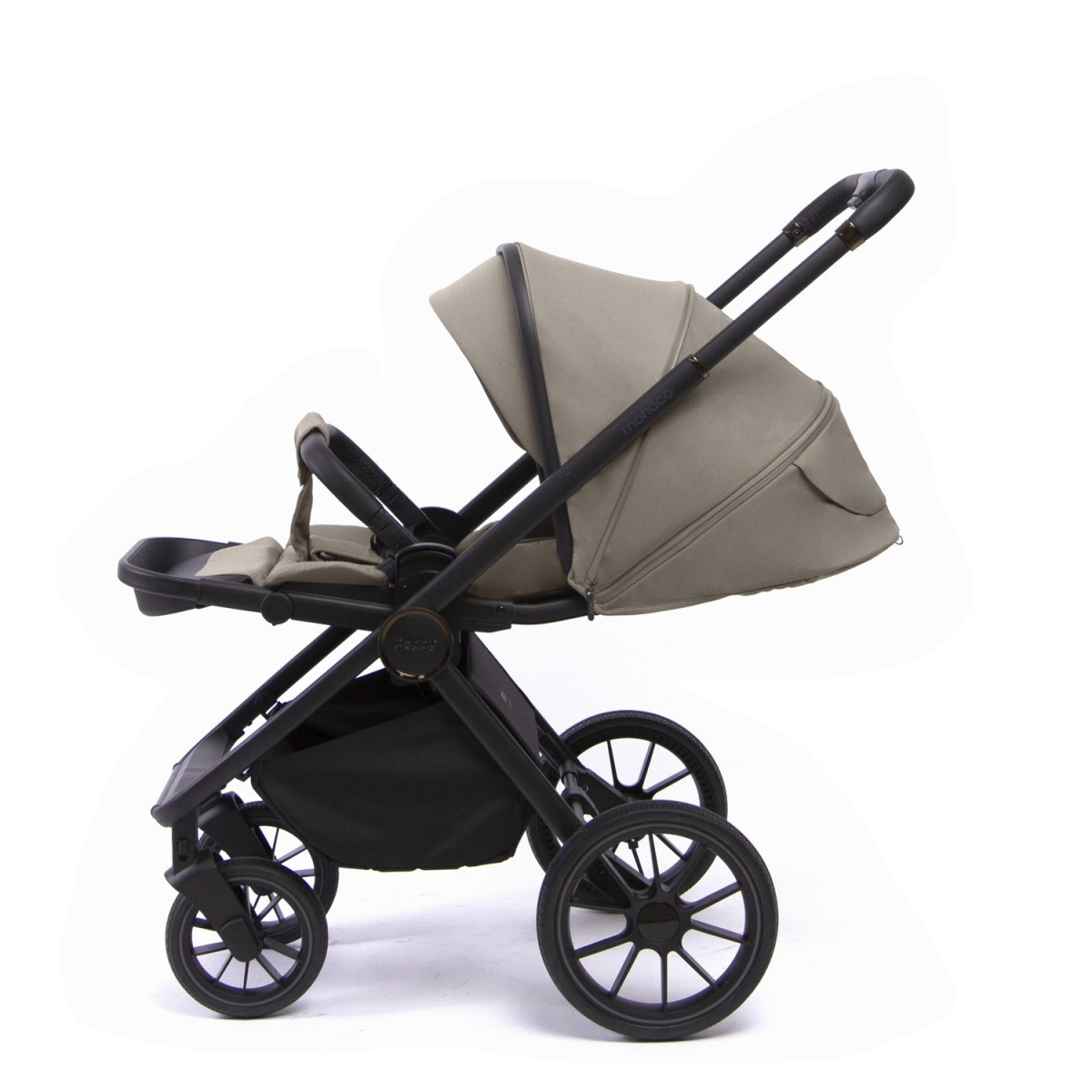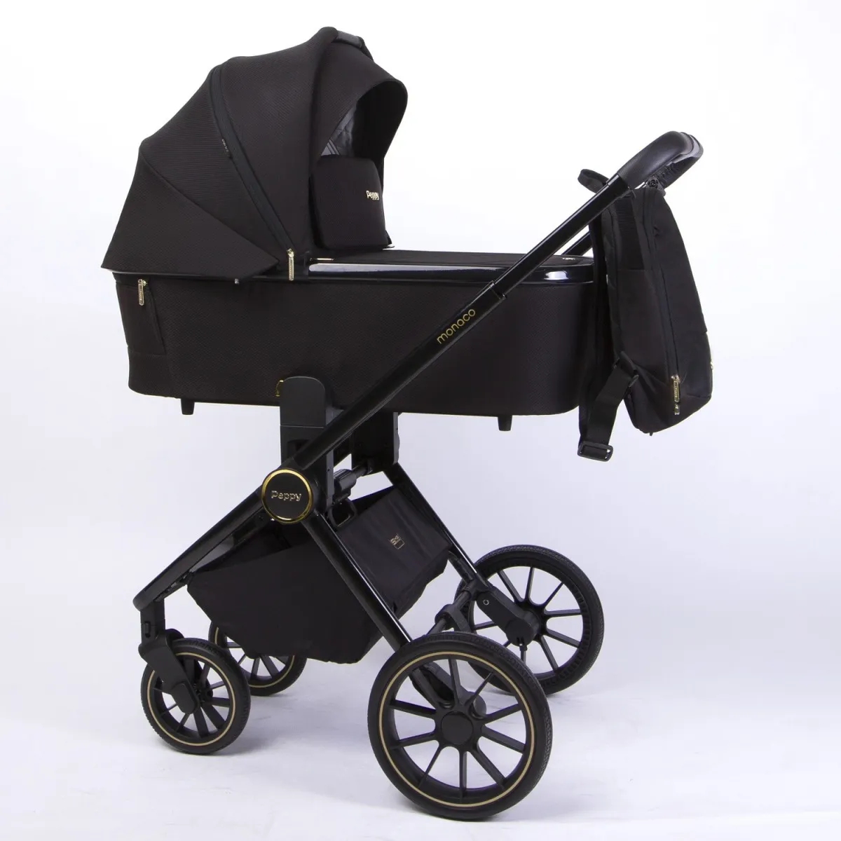 • Peppy Monaco укомплектована вместительной корзиной, которая увеличивается в размерах и оснащена двумя дополнительными карманами для мелочей, где удобно спрятать москитную сетку.